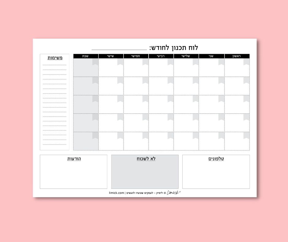 תכירי את לוח התכנון החודשי המעוצב והאהוב של לימיק בקובץ דיגיטלי להורדה ולהדפסה ביתית –